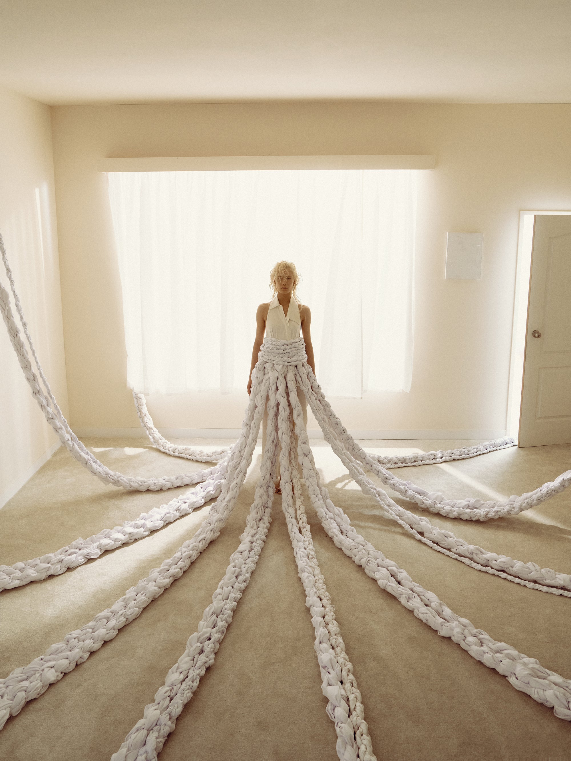 Begins with undoing, an exploration in deconstruction, then becomes a sensory experience, shaping the relationship between clothing and the wearer.